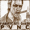 Description: Vimes lighting a cigar using a swamp dragon, with text "Fabricati Diem Pvnc"