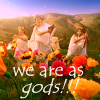 Description: the Trio as Greek gods, with text "we are as gods!!!"
