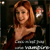 Description: Willow dressed as vamp!Willow, with text "ceci n'est pas une vampire" (this is not a vampire)