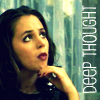 Description: Faith looking thoughtful, with text "deep thought"